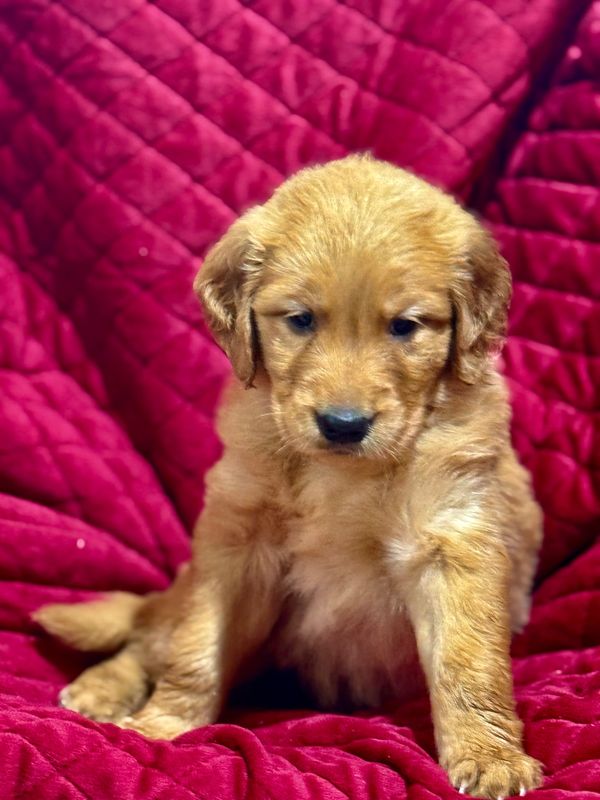 Meet our stunning AKC-registered Golden Retriever, a young male with a rare dark auburn coat that turns heads wherever he goes. With a confident, athletic build and outstanding conformation, he exemplifies the breed standard in both form and spirit. Energetic, intelligent, and full of personality, he’s as joyful in the field as he is affectionate at home.