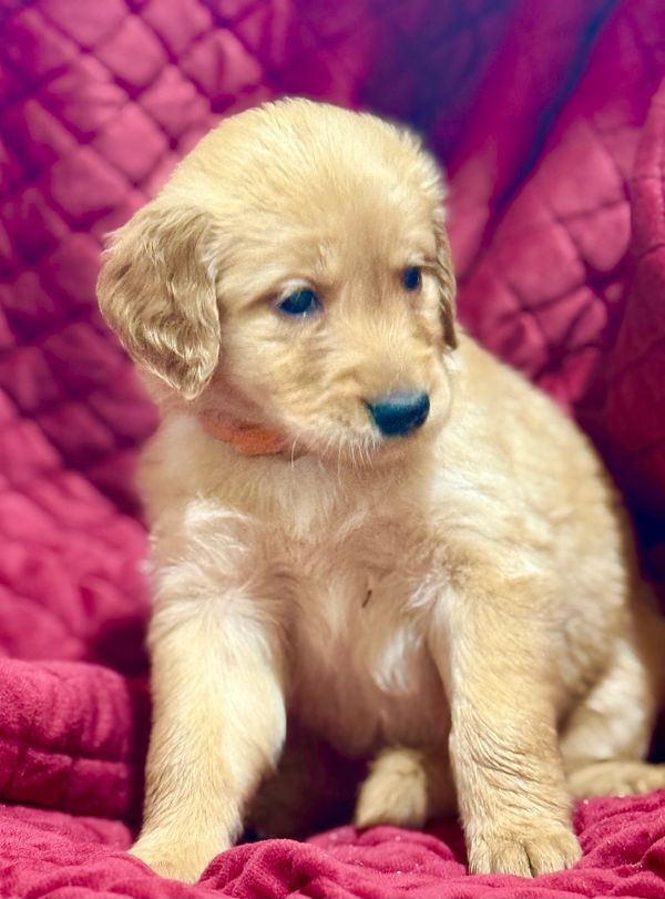 Emylou is a beautiful AKC-registered Golden Retriever with a rich medium-dark golden coat and the sweetest personality you could ever hope to meet. Gentle, affectionate, and endlessly loyal, she brings warmth and calm to every room—and every litter. Now expecting her first litterwith Remington , Emmylou has proven to be an attentive, nurturing mom who raises healthy, well-socia